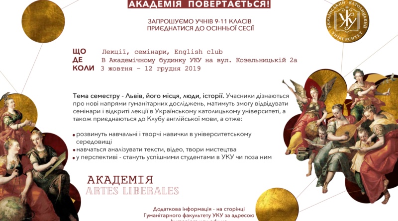 Для учнів 9-11 класів стартує навчання осінньої сесії проекту” АКАДЕМІЯ ARTES LIBERALES”