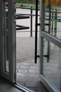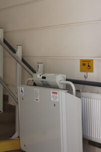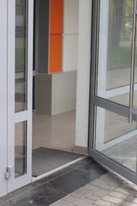 На перших поверхах шкіл облаштовують спеціальні рецепції двох рівнів: нижчий (70 см) — для зручності людей на кріслах колісних, та вищий (110 см) — для інших відвідувачів. Це дозволяє комфортно звернутись до охорони або персоналу після входу до школи.